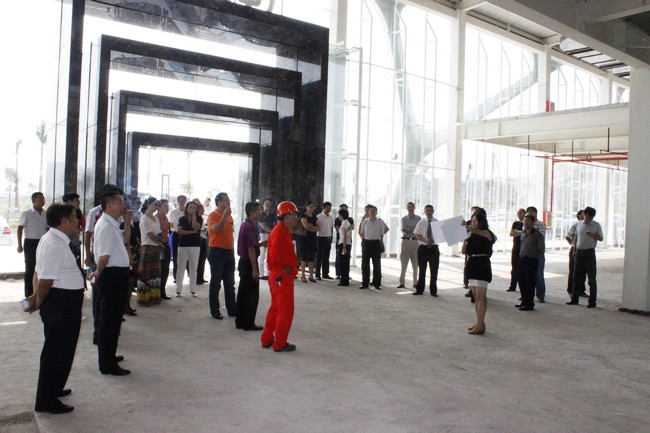 参观人员一行首先来到中国银行签约入驻的“玻璃盒子”。乳白色的钢结构、淡青色的玻璃幕墙、宽阔的室内空间、360度全景视野获得了参观人员的交口称赞。